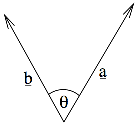 \[{\mathbf{a}}\cdot{\mathbf{b}} = |{\mathbf{a}}|\,|{\mathbf{b}}|\,\cos\theta,\]