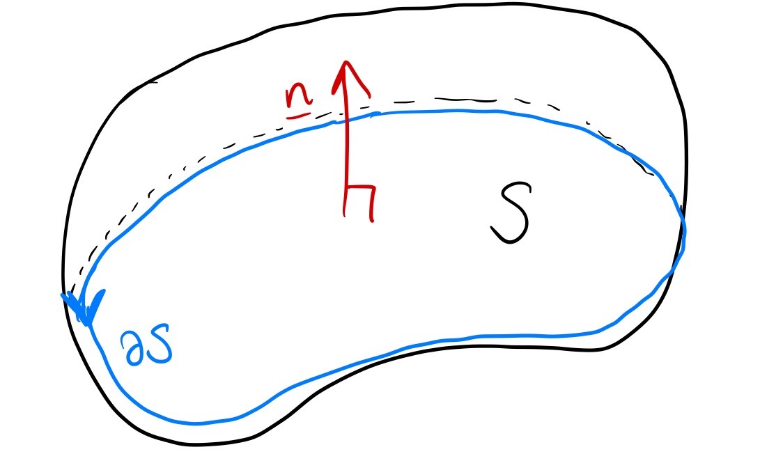 For the theorem to apply, the surface \(S\) has to be oriented. That means that the normal is well-defined everywhere on the surface.